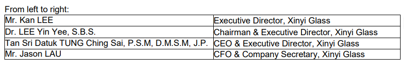 Dr LEE Yin Yee (S.B.S), Chairman of Xinyi Glass, said, “2023 was a year full of challenges and changes – the costs of raw materials continued to rise in the first half (“1H”) of the year and the glass industry entered into a period of consolidation. Situations began to stabilize in the second half (“2H”) of the year with the positive effects of the state supporting the real estate sector and assured delivery of properties becoming apparent. For the Group, boasting a solid business foundation and such core strengths as high-quality products and strong presence in China and Overseas, it has leadership edges over smaller players in the industry and is able to control greater extent impacts of external risks. Xinyi Glass will closely follow national policies, seize opportunities and keep improving its business layout, so as to maintain its leadership and competitive advantages."