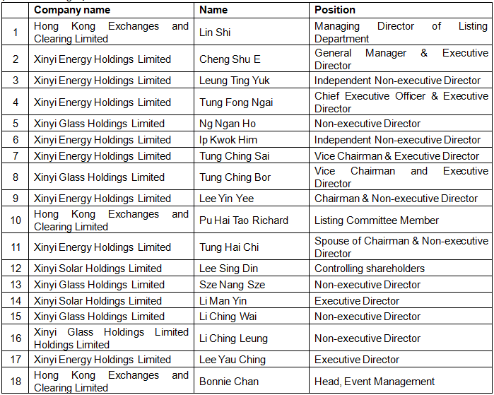 (Hong Kong, 28 May 2019) – Shares of Xinyi Energy Holdings Limited (“Xinyi Energy” or the “Group”), a leading non-State-owned solar farm owner and operator in the PRC,have commenced trading on the Main Board of The Stock Exchange of Hong Kong Limited (“HKEX”) today under the stock code 3868.