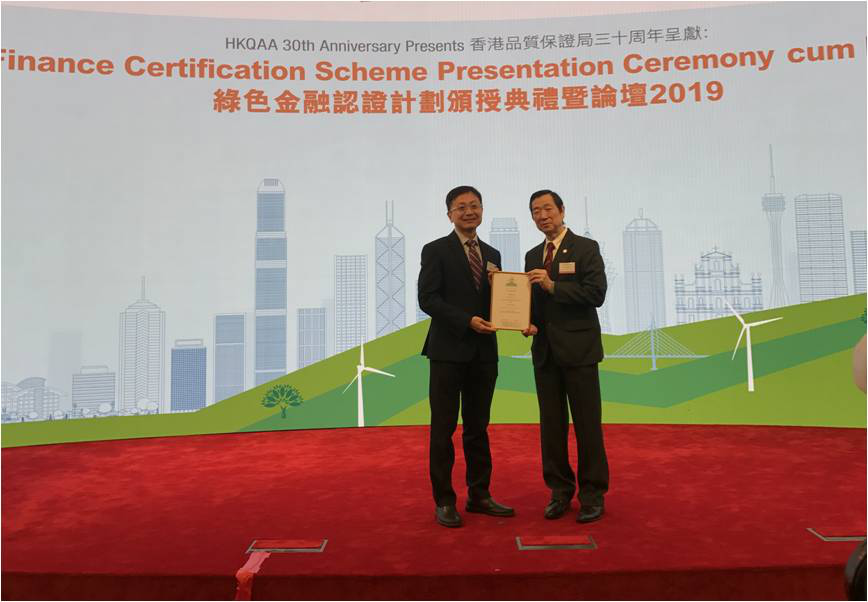 信義玻璃首席財務官兼公司秘書劉錫源先生獲得香港品質保證局(「HKQAA」)頒發綠色金融發行前證書。