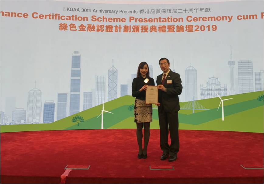 信義光能投資者關係總監謝思揚女士獲得香港品質保證局(「HKQAA」)頒發綠色金融發行前證書。