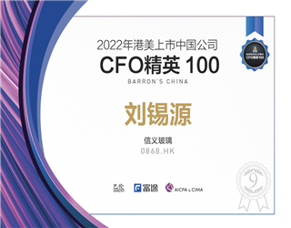 信義玻璃首席財務官榮登巴倫中國「港美上市中國公司CFO精英 100」第九名