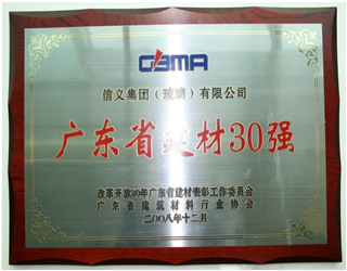 信义玻璃荣获“改革开放30年广东建材企业30强”等称号